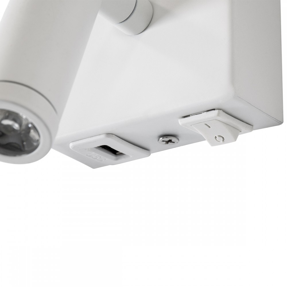 GloboStar® ROULETTE-R 61380 Μοντέρνο Φωτιστικό Τοίχου - Απλίκα Ξενοδοχείου Bed Side LED 3W 360lm & 1 x E27 36° & 360° AC 220-240V - Reading Up/Down Light - Φορτιστής USB 3A - Μ22 x Π23.5 x Υ37cm - Φυσικό Λευκό 4500K - Λευκό με Μπεζ Καπέλο - Σετ 2