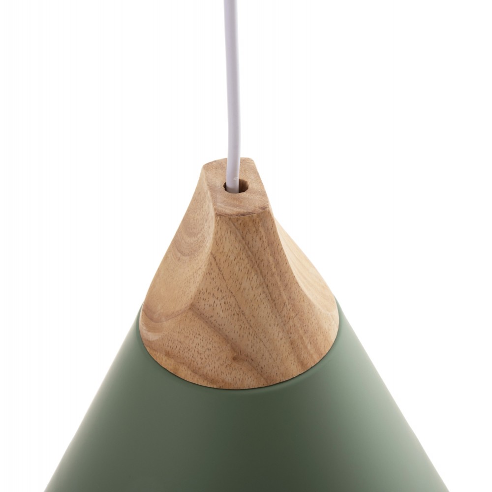 Ανακαλύψτε αυτό το νέο μας κρεμαστό φωτιστικό οροφής και ολοκληρώστε την διακόσμησή σας. Πρόκειται για ένα φωτιστικό με ΠΡΑΣΙΝΟ μεταλλικό καπέλο σε σχήμα καμπάνας με λεπτομέρεια ξύλου στην κορυφή του φωτιστικού. Αισθητικά, ολοκληρώνεται με το λευκό καλώδιο κρέμασης και την λευκή βάση οροφής, και αποτελεί την τελευταία τάση στα φωτιστικά οροφής.