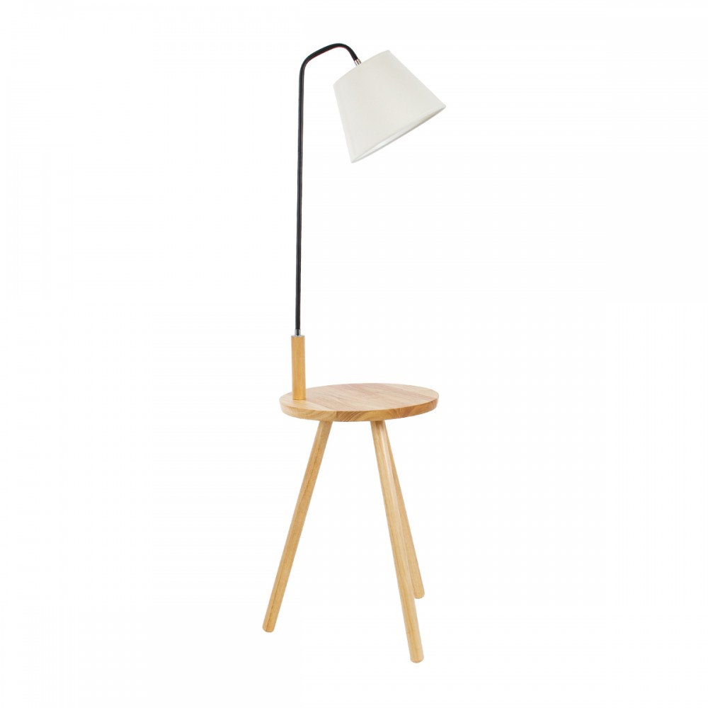 GloboStar® TIFFANY 01206 Μοντέρνο Φωτιστικό Δαπέδου Μονόφωτο 1 x E27 Μαύρο Μεταλλικό με Μπεζ Ξύλινη Επιφάνεια Καμπάνα D28 x H140cm