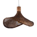 GloboStar® CUBA 01716 Vintage Κρεμαστό Φωτιστικό Οροφής Μονόφωτο 1 x E27 Καφέ Ξύλινο Μπαμπού Φ33 x Y25cm