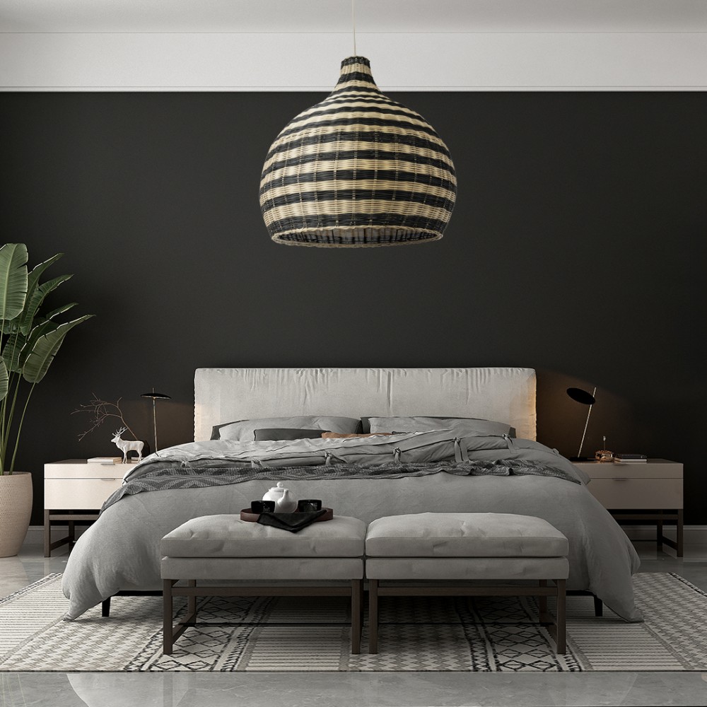 GloboStar® JAMAICA 01955 Boho Κρεμαστό Φωτιστικό Οροφής Μονόφωτο 1 x E27 AC220-240V IP20 - Φ60 x Υ60cm - Μπεζ με Χακί Ξύλινο Μπαμπού Πλέγμα Καμπάνα - 5 Χρόνια Εγγύηση
