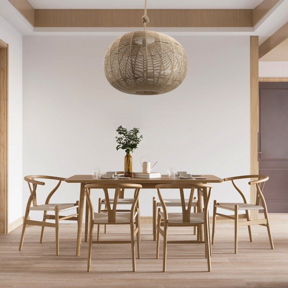 GloboStar® MANDALA 00732 Vintage Κρεμαστό Φωτιστικό Οροφής Μονόφωτο 1 x E27 Πλέγμα με Μπεζ Σχοινί Φ80 x Υ60cm