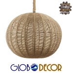 GloboStar® MANDALA 01593 Vintage Κρεμαστό Φωτιστικό Οροφής Μονόφωτο 1 x E27 Πλέγμα με Μπεζ Σχοινί Φ60 x Υ45cm