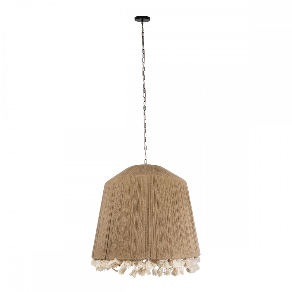 GloboStar® PUERTORICO 02093 Boho Κρεμαστό Φωτιστικό Οροφής Τρίφωτο 3 x E27 AC220-240V IP20 - Φ80 x Υ80cm - Μπεζ Λεπτό Σχοινί Τριχιά Καμπάνα - 5 Χρόνια Εγγύηση