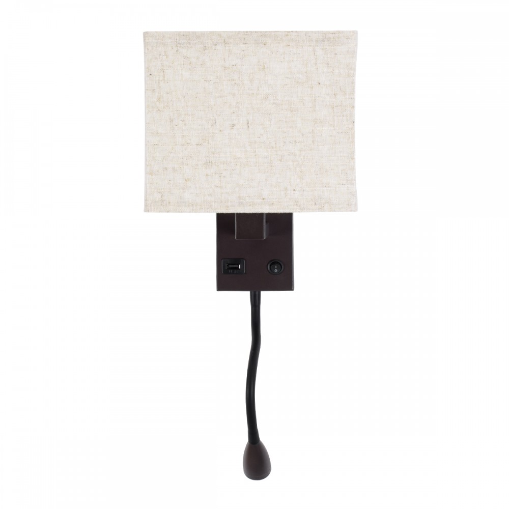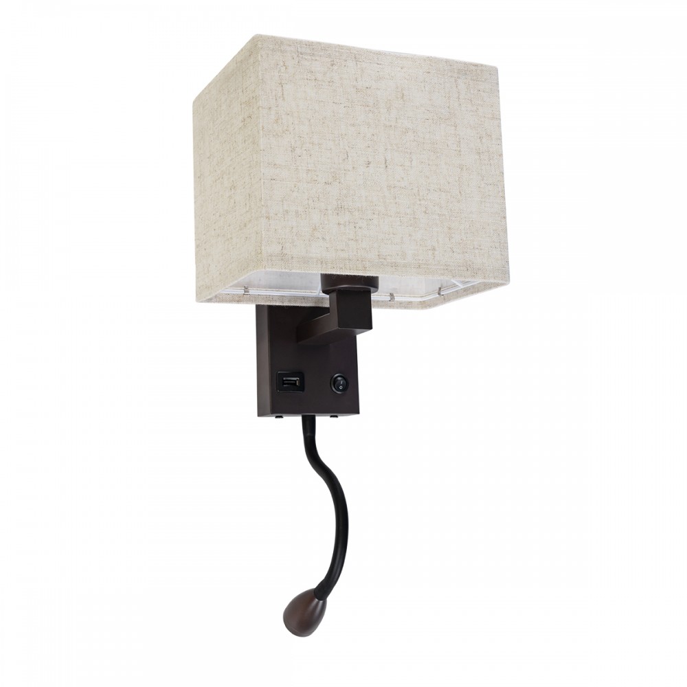 GloboStar® ROULETTE-S 61384 Μοντέρνο Φωτιστικό Τοίχου - Απλίκα Ξενοδοχείου Bed Side LED 3W 360lm & 1 x E27 36° & 360° AC 220-240V - Reading Up/Down Light - Φορτιστής USB 3A - Μ17 x Π20 x Υ37cm - Φυσικό Λευκό 4500K - Καφέ με Μπεζ Καπέλο - Σετ 2 Τεμ