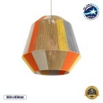 GloboStar® SALERNO 02289 Boho Κρεμαστό Φωτιστικό Οροφής Μονόφωτο 1 x E27 AC220-240V IP20 - Φ50 x Υ50cm - Μπεζ με Λευκό και Γρι με Πορτοκαλί Λεπτό Νήμα Βαμβακερό Πλέγμα Καμπάνα - 5 Χρόνια Εγγύηση