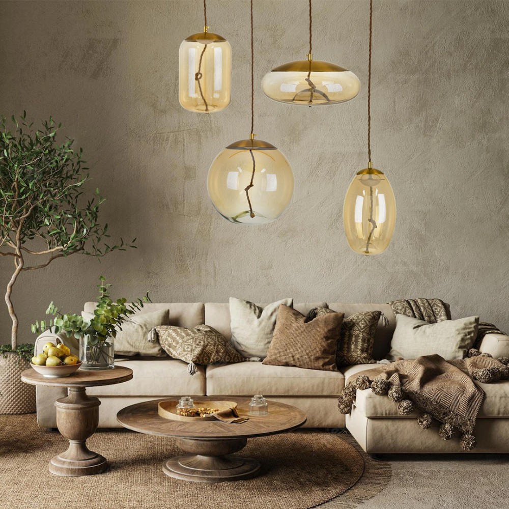 GloboStar® ΑΧΤΟΝ 00748 Μοντέρνο Κρεμαστό Φωτιστικό Οροφής Μονόφωτο Διάφανο Μελί Γυάλινο LED AC 100-240V Θερμό Λευκό 2700K Φ30 x Y30cm