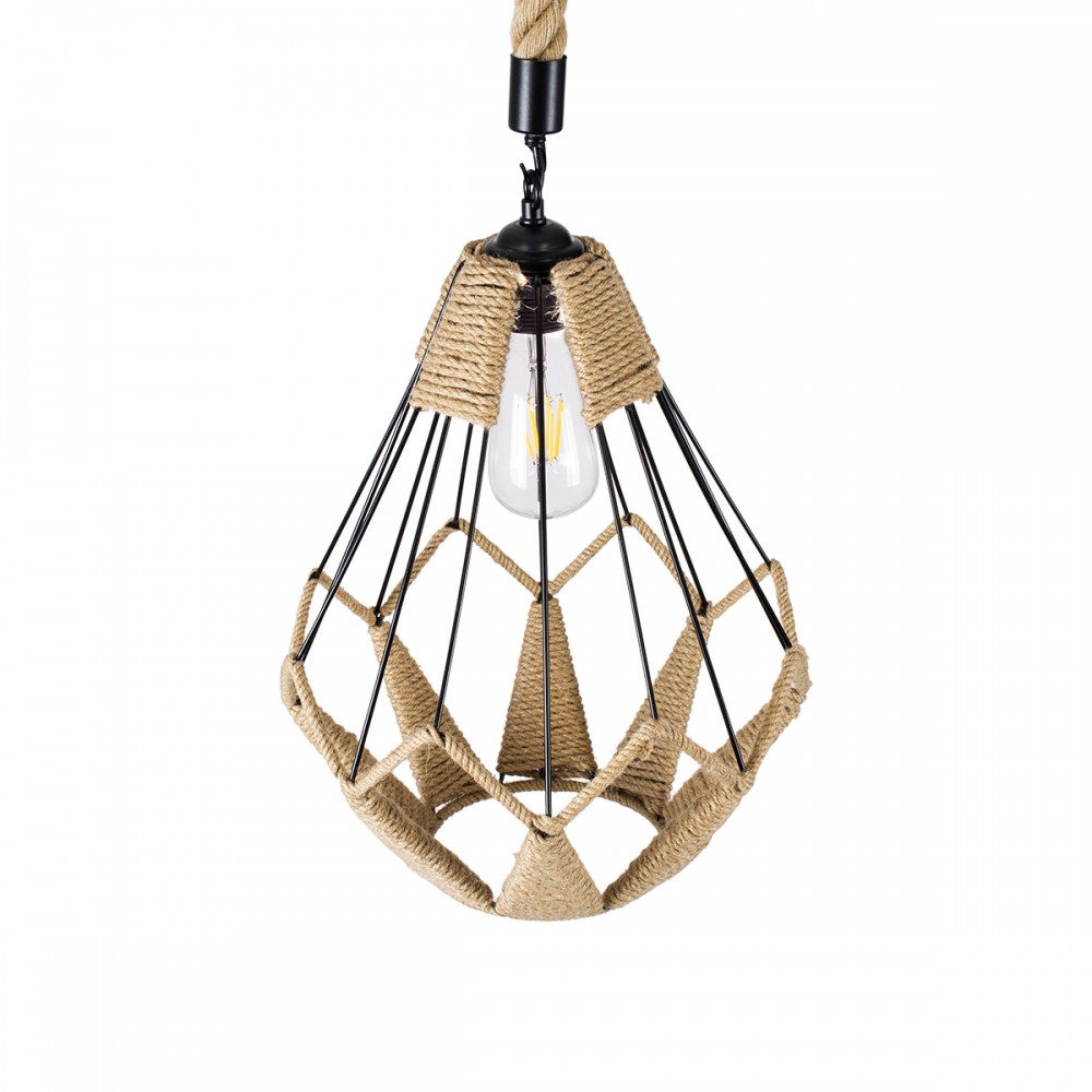 GloboStar® CONICAL 01617 Vintage Κρεμαστό Φωτιστικό Οροφής Μονόφωτο 1 x E27 Πλέγμα με Μπεζ Σχοινί Φ30 x Υ40cm