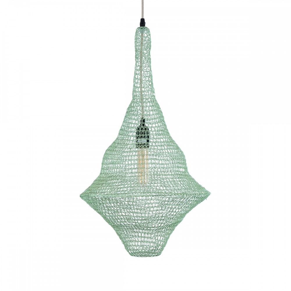GloboStar® KENTUCKY 01873 Vintage Κρεμαστό Φωτιστικό Οροφής Μονόφωτο 1 x E27 AC220-240V IP20 - Φ35 x Υ60cm - Τιρκουάζ Μεταλλικό Πλέγμα - 5 Χρόνια Εγγύηση