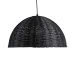 GloboStar® MONTANA 02383 Boho Κρεμαστό Φωτιστικό Οροφής Μονόφωτο 1 x E27 AC220-240V IP20 - Φ50 x Υ25cm - Μαύρο Μπαμπού Πλέγμα Καμπάνα - 5 Χρόνια Εγγύηση