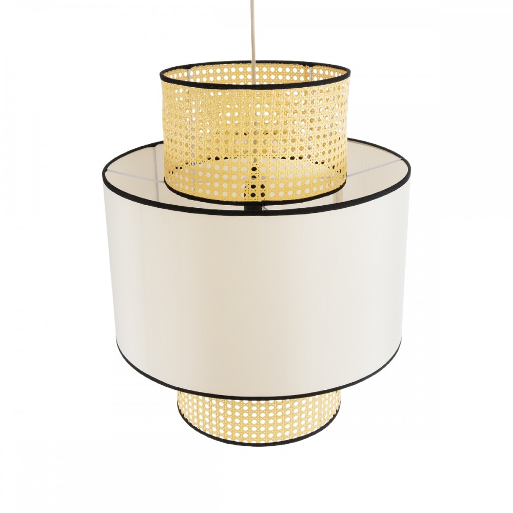 GloboStar® SAIGE 01917 Boho Κρεμαστό Φωτιστικό Οροφής Μονόφωτο 1 x E27 AC220-240V IP20 - Φ50 x Υ60cm - Μπεζ με Λευκό και Μαύρες Λεπτομέρειες Ξύλινο Μπαμπού Πλέγμα - 5 Χρόνια Εγγύηση