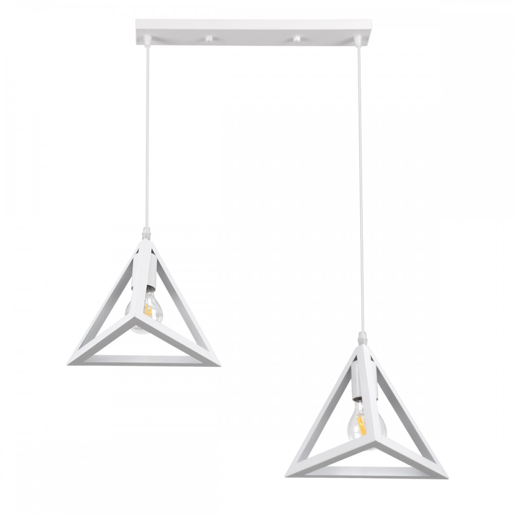 GloboStar® TRIANGLE 00612 Μοντέρνο Κρεμαστό Φωτιστικό Οροφής Δίφωτο 2 x E27 Λευκό Μεταλλικό Πλέγμα Μ60 x Π22 x Y130cm
