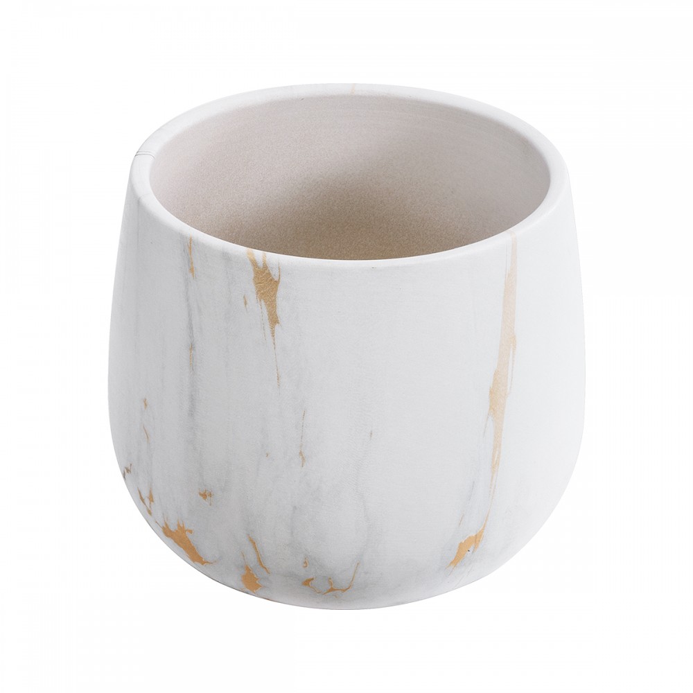 GloboStar® Artificial Garden NICE 20550 Διακοσμητικό Κεραμικό Κασπώ Γλάστρα - Flower Pot Λευκό με Χρυσές Λεπτομέρειες Φ15 x Υ12cm