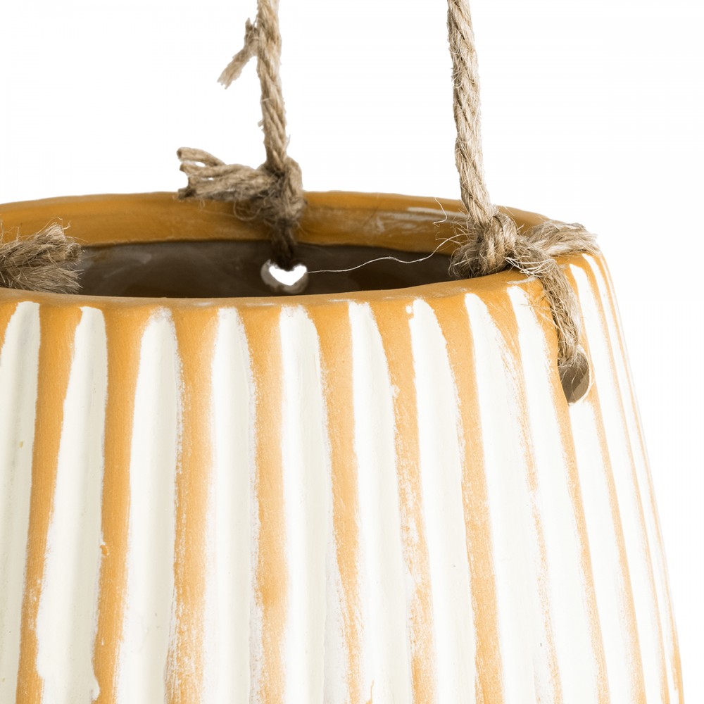 GloboStar® Artificial Garden BUBASTIS 20528 Κρεμαστό Διακοσμητικό Κεραμικό Κασπώ Γλάστρα - Flower Pot Πορτοκαλί με Λευκό Φ13 x Υ10.5cm