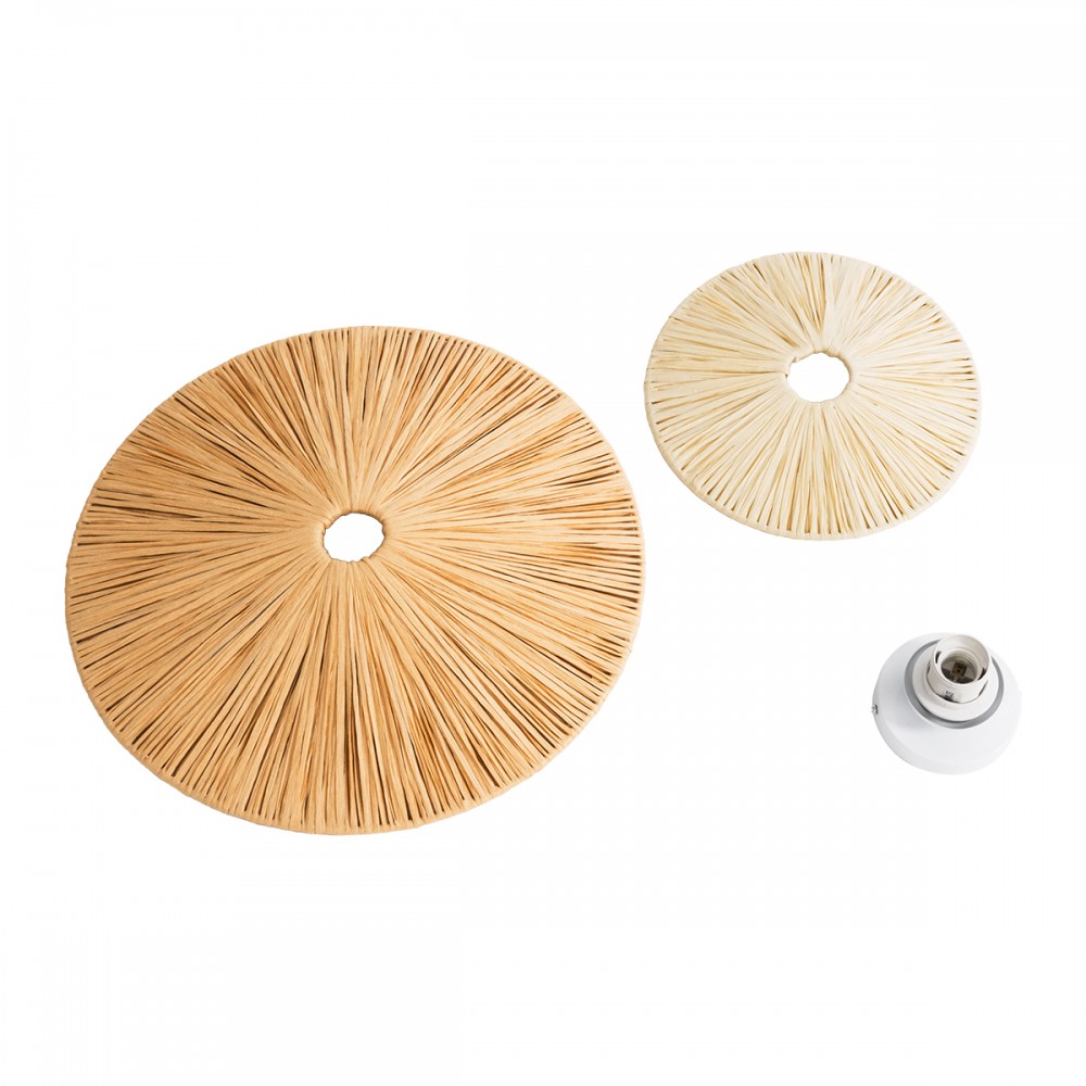 GloboStar® COLOMBO 02278 Boho Φωτιστικό Τοίχου - Απλίκα Μονόφωτο 1 x E27 AC 220-240V IP20 - Φ40 x Υ4.5cm - Μπεζ με Μπεζ Καφέ Φυσική Ράφια Άχυρο Πλέγμα - 5 Χρόνια Εγγύηση