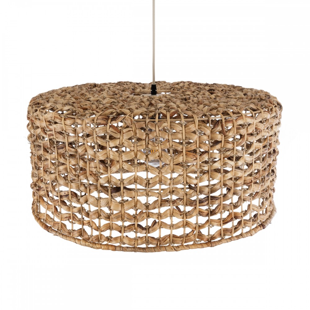 GloboStar® MANGATA 01849 Boho Κρεμαστό Φωτιστικό Οροφής Μονόφωτο 1 x E27 AC220-240V IP20 - Φ60 x Υ28cm - Καφέ Water Hyacinth - Υδρουάκινθος Πλέγμα Καμπάνα - 5 Χρόνια Εγγύηση