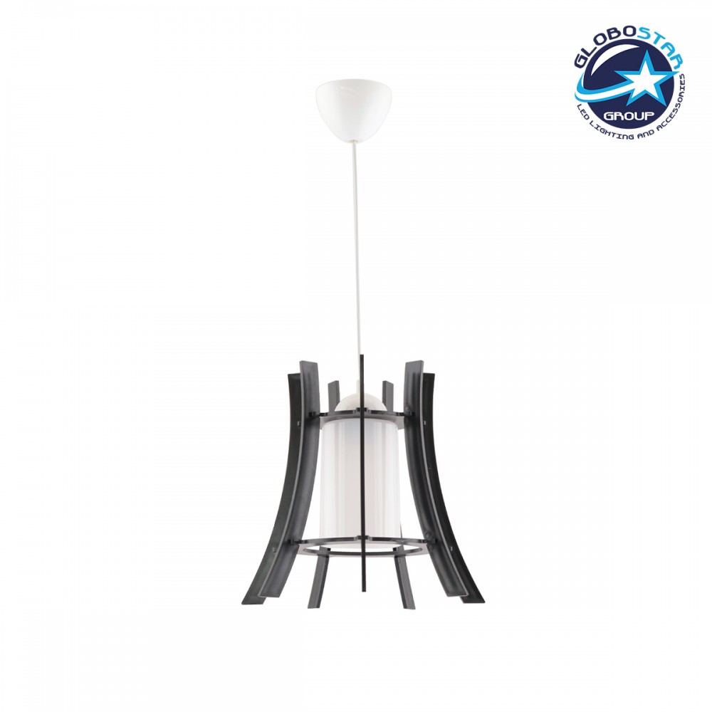 GloboStar® TRIANGLE 01063 Μοντέρνο Κρεμαστό Φωτιστικό Οροφής Μονόφωτο Μαύρο Μεταλλικό Πλέγμα Φ25 x Y21cm