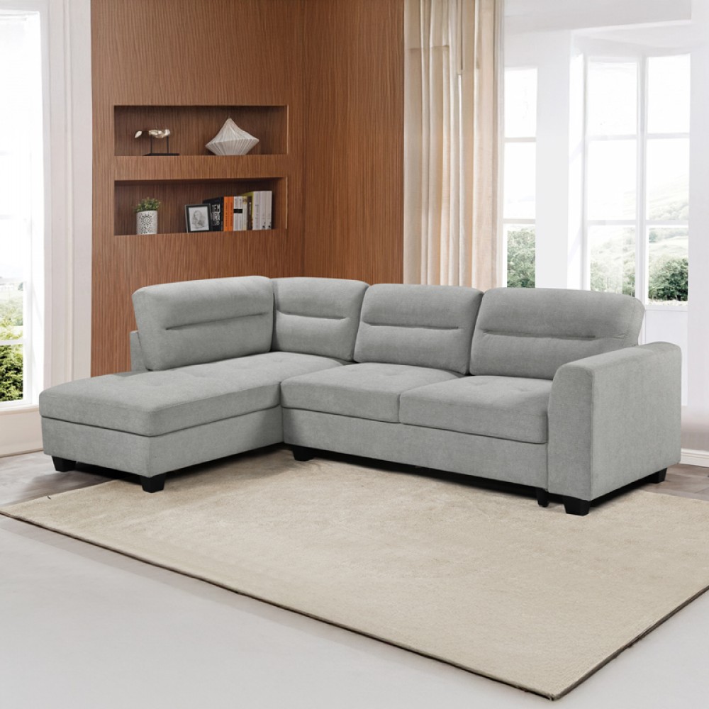 Σαλόνι γωνία Nogi σε πρακτικές διαστάσεις, ιδανικό ακόμη για μικρά σαλόνια - Προσαρμόσιμη γωνία - Εύκολη μετατροπή σε κρεβάτι - Αποθηκευτικός χώρος - Mοντέρνος σχεδιασμός - Επένδυση συνθετικού υφάσματος - Ευρωπαϊκής προέλευσης - Πολύ καλή ποιότητα κατασκευής - Άνετο κάθισμαΥλικά κατασκευής