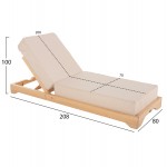 Η επαγγελματική ξαπλώστρα παραλίας IKARIA της εταιρίας μας σε ΦΥΣΙΚΟ χρώμα είναι μια μοντέρνα και πολυτελής πρόταση για την παραλία. Δεν είναι ψηλή αλλά στηρίζεται σε 4 πολύ χαμηλά πόδια στις 4 γωνίες. Η ξύλινη κατασκευή της την κάνει απίστευτα ανθεκτική και στιβαρή και το ΜΠΕΖ textilene πανί που καλύπτει το παχύ στρώμα ταιριάζει όμορφα με τον σκελετό. Η σκαλιέρα έχει 5 θέσεις ανάκλισης που επιτυγχάνεται με ένα σχοινένιο χερούλι που βρίσκεται στο πίσω μέρος της πλάτης, και σε συνδυασμό με τις μεγάλες διαστάσεις της, προσφέρει όλα αυτά που θέλετε από μια πολυτελή ξαπλώστρα παραλίας.