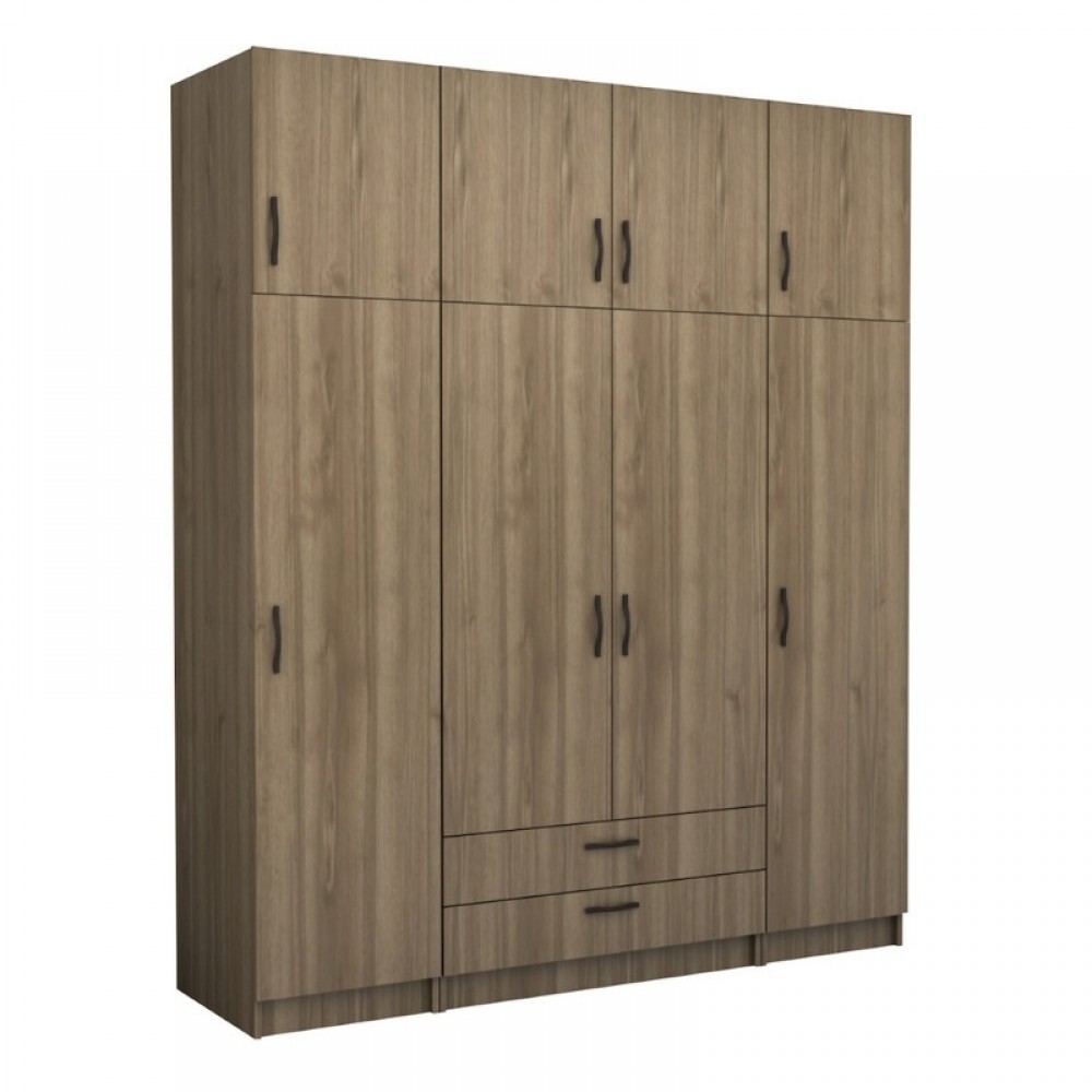 Ντουλάπα ρούχων Victoria Megapap τετράφυλλη με πατάρι και συρτάρια χρώμα καρυδί 200x60x240εκ.