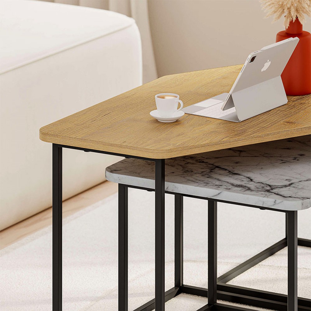 Τραπεζάκι σαλονιού σετ 3 τμχ. Nesty Megapap από μελαμίνη χρώμα saphhire oak - γκρι ρετρό - λευκό εφέ μαρμάρου 110x60x48εκ.