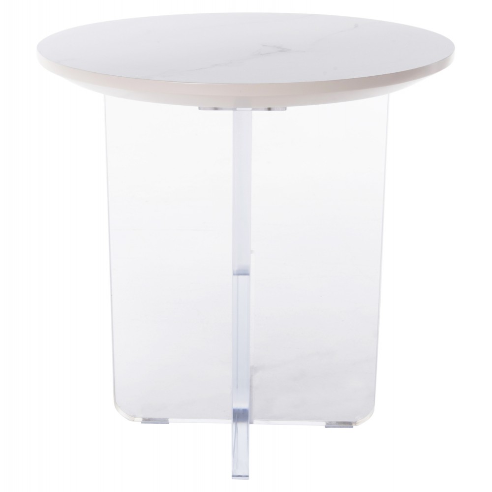 Το ACRYLON είναι ένα χαμηλό στρογγυλό τραπεζάκι για το σαλόνι σε χρωματισμό ΛΕΥΚΟΥ ΜΑΡΜΑΡΟΥ. Η όμορφη φαλτσοκομμένη επιφάνεια του τραπεζιού στηρίζεται(βιδώνεται) σε διάφανα ΑΚΡΥΛΙΚΑ πόδια. Αυτό το τραπέζι θα αναβαθμίσει αισθητικά το σαλόνι σας ενώ μπορεί να ταιριάξει με πολλά διαφορετικά στυλ και χρώματα στον τριγύρω χώρο.