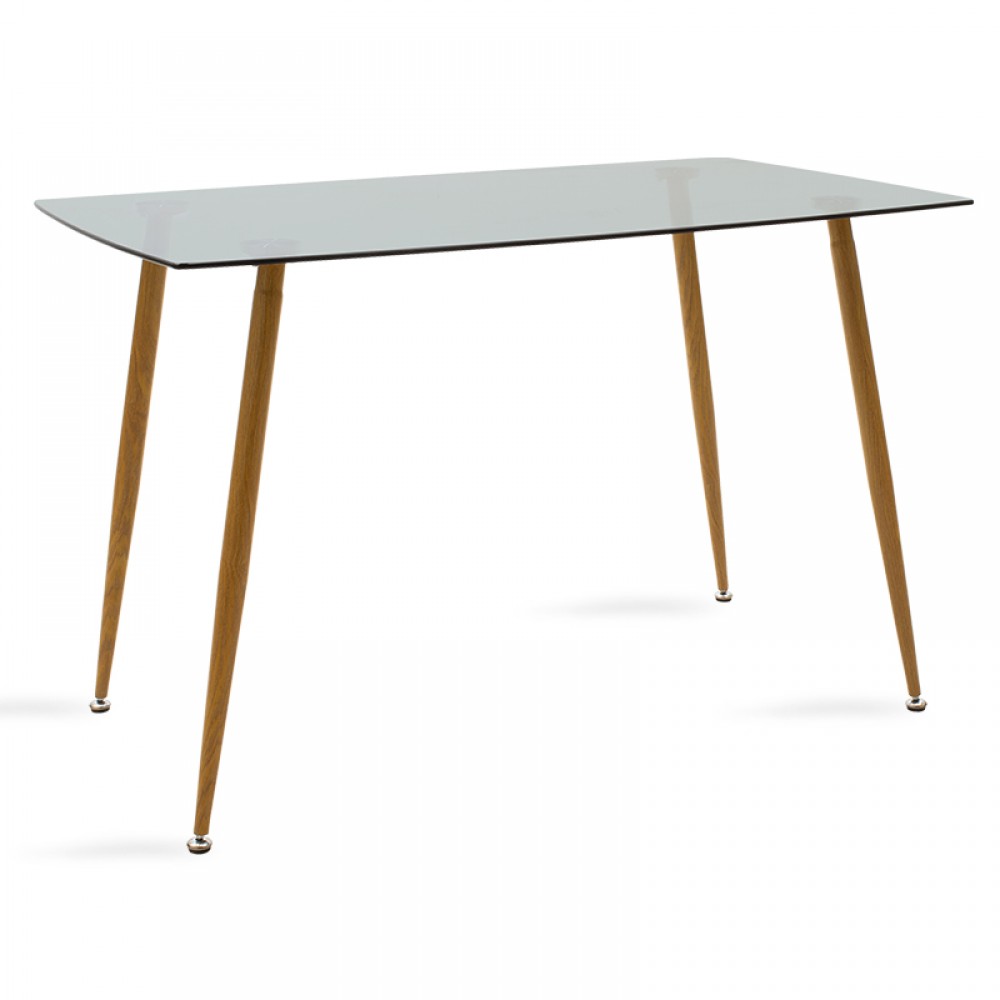 Τραπέζι Chloe pakoworld γυάλινο 8χιλ ανθρακί - πόδι φυσικό 120x70x75εκ