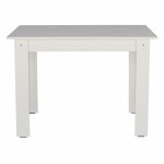 Το ΗΜ2428.03 είναι ένα ορθογώνιο τραπέζι από μελαμίνη σε ΛΕΥΚΟ χρώμα. Τα 4 πόδια είναι επίσης από μελαμίνη και ιδιαίτερα στιβαρά ενώ στο κάτω μέρος διαθέτουν πλαστικές τάπες για την καλύτερη προστασία των δαπέδων αλλά και των ποδιών του τραπεζιού. Πρόκειται για ένα απλό τραπέζι σε κανονική διάσταση, που μπορεί να εξυπηρετήσει άνετα 4 τουλάχιστον άτομα.