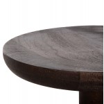 Το στρογγυλό τραπέζι σαλονιού CRABB που είναι εξολοκλήρου κατασκευασμένο από μασίφ ξύλο mango σε ΣΚΟΥΡΟ ΚΑΦΕ χρώμα μοιάζει με σκαμπό, χάρη στο κωνικό σχήμα της βάσης που καταλήγει στην στρογγυλή επιφάνεια. Ένα τραπέζι που θα εντυπωσιάσει με το σχήμα και το χρώμα του, αφού είναι sand blasted, προσδίδοντας εικόνα παλαιότητας στο έπιπλο.