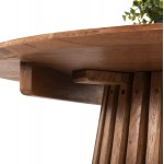 Το FRANTZ είναι ένα στρογγυλό τραπέζι για την τραπεζαρία, με ικανοποιητικές διαστάσεις σε φυσικό χρώμα ξύλου. Το τραπέζι στηρίζεται σε μια ξύλινη κατασκευή στο κέντρο με πολλές δοκούς σε κωνική διάταξη που ενώνονται μεταξύ τους στο κάτω μέρος της εσωτερικής πλευράς με έναν δακτύλιο. Αυτό το τραπέζι θα αναβαθμίσει αισθητικά την τραπεζαρία σας ενώ μπορεί να ταιριάξει με πολλά διαφορετικά στυλ και χρώματα στον τριγύρω χώρο, όπως και με διαφορετικά στυλ καρέκλας.