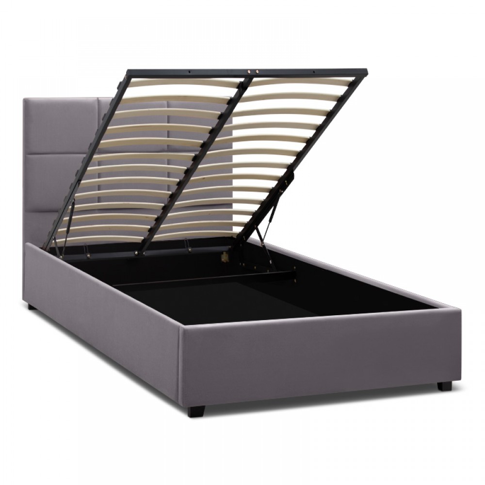 Κρεβάτι Kingston Megapap βελούδινο με αποθηκευτικό χώρο χρώμα γκρι 120x200εκ.